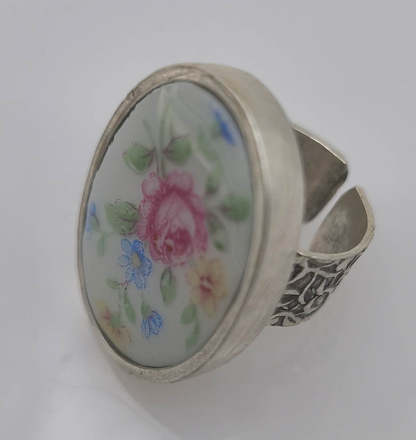 Offrez-vous ou à vos proches cette grosse bague réglable plaqué argent 925 avec un cabochon en porcelaine ancienne et laissez son design exceptionnel rehausser votre style tout en racontant une histoire captivante.