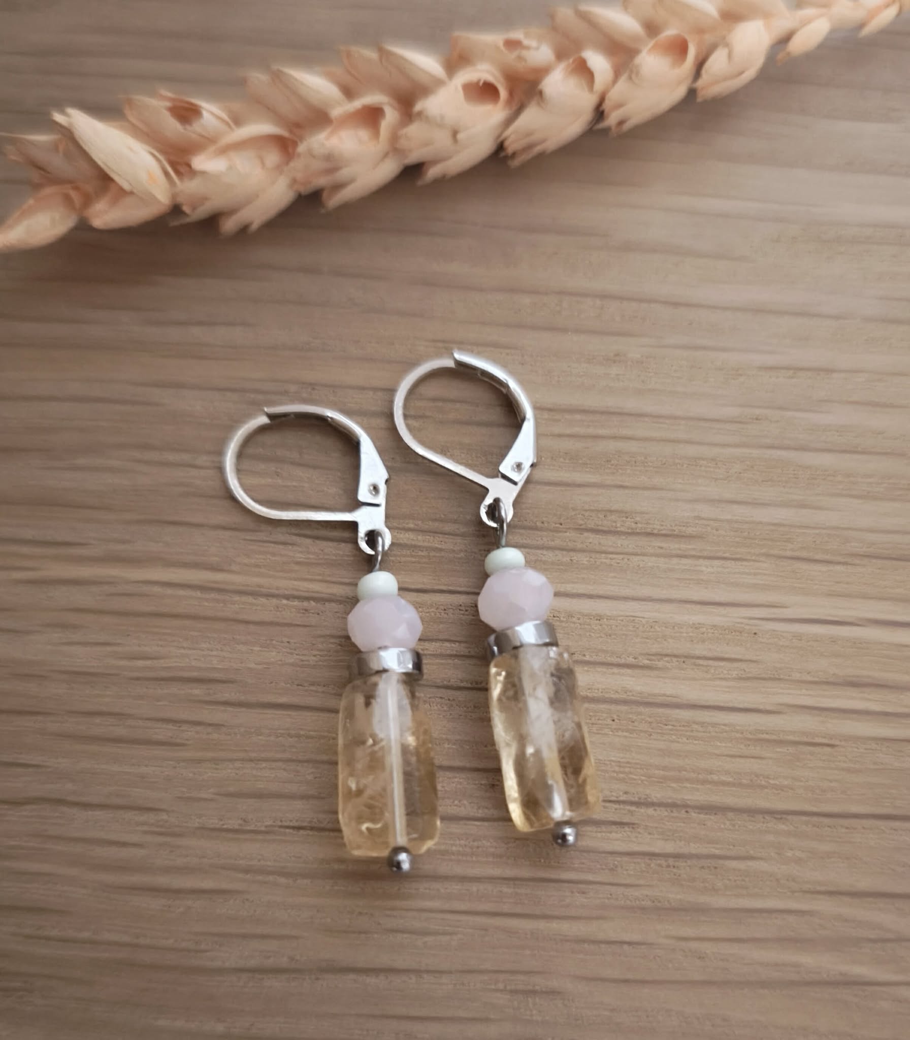 Élégante et charmante, ces boucles vous raviront par leur couleur pastel. La citrine aux vertus équilibrantes et énergisantes vous promet harmonie intérieure et abondance.