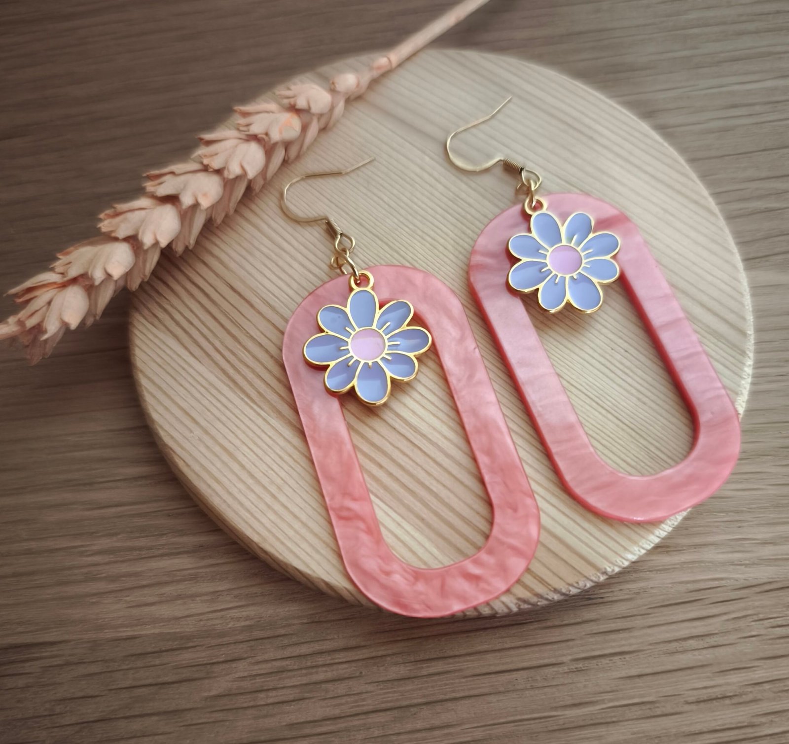 Fabriquées à partir d’acrylique robuste et d’acier inoxydable, ces boucles d’oreilles sont conçues pour durer et résister à l’usure. L’acrylique rose mesure 5,5 cm, une taille idéale pour équilibrer élégance et praticité dans votre quotidien. Les breloques fleurs émaillées apportent une finition nette et résistante, garantissant que votre style reste impeccable à chaque utilisation.