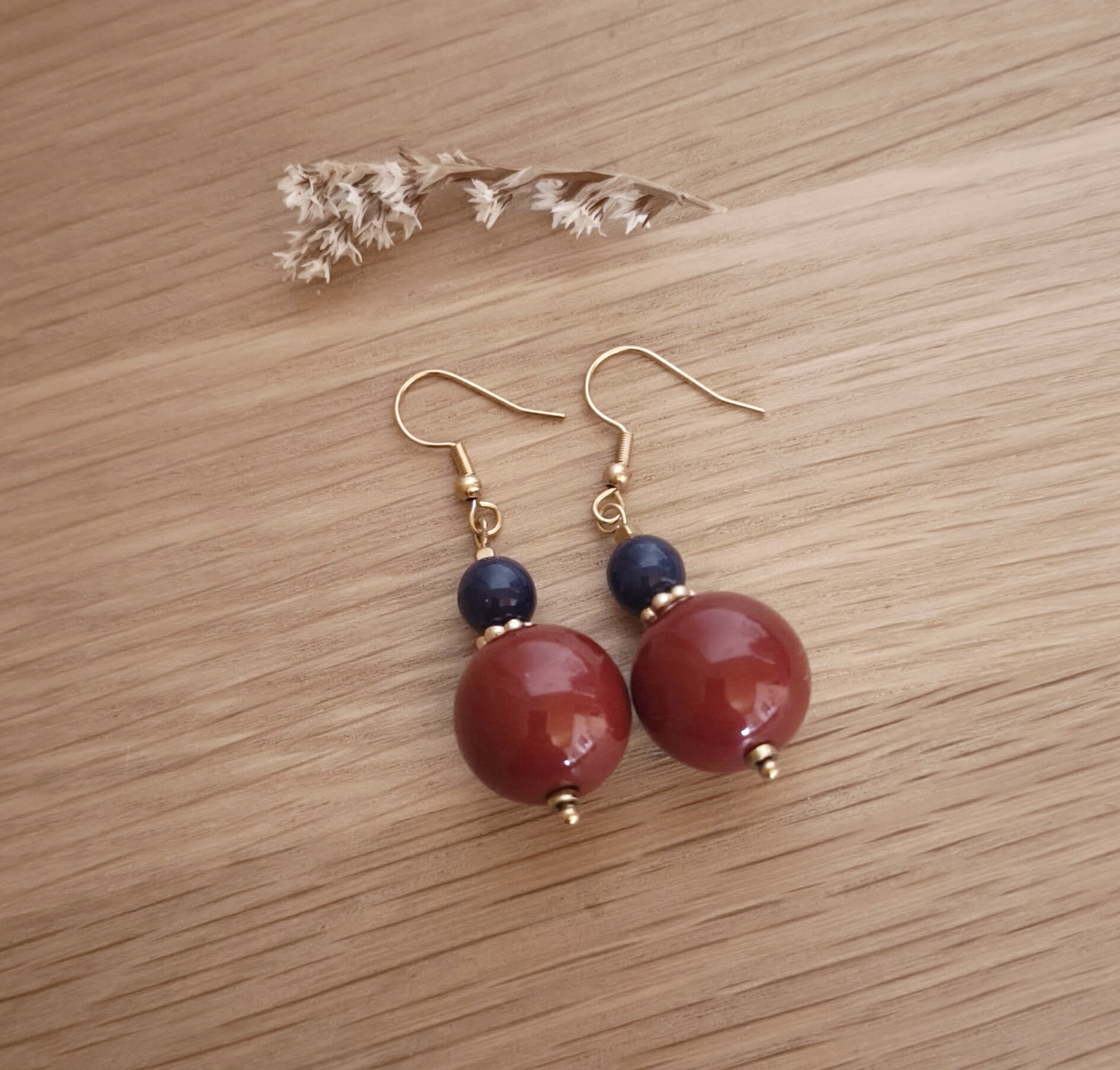 Créées à partir de perles bleu azur récupérées sur un collier mis au rebut et de perles rouge grenat en acryliques, ces boucles issu de mon imagination que j’ai appelées Paloma sont lumineuses et très tendance pour cette saison.
