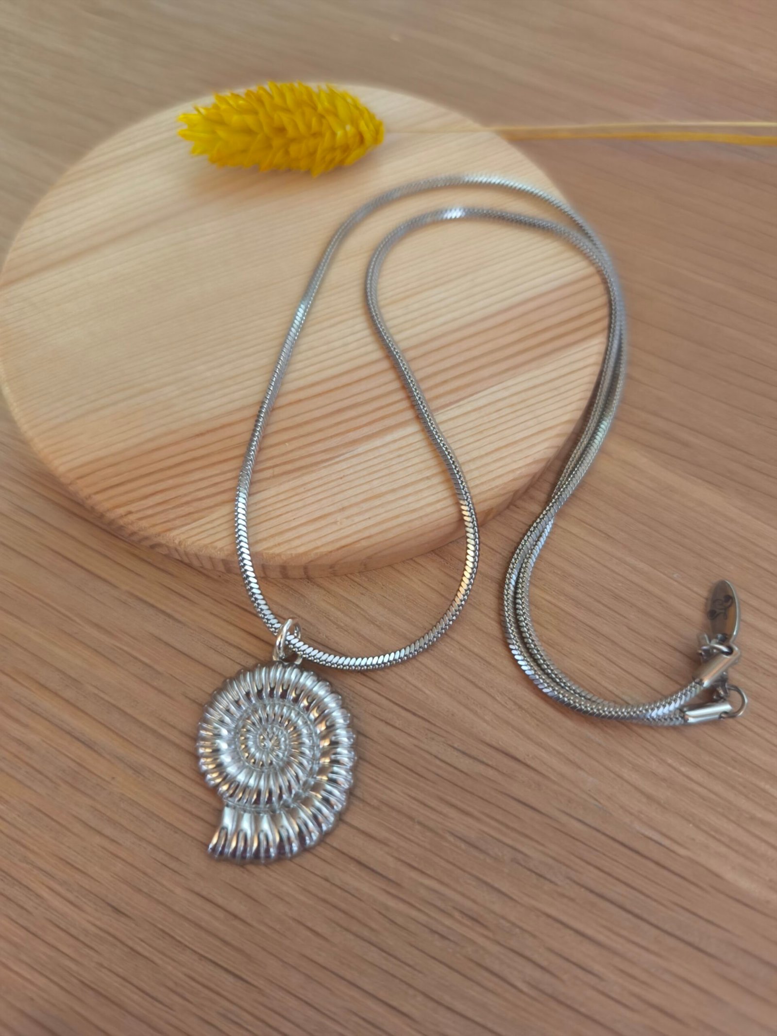 Découvrez le collier avec un pendentif coquillage en acier inoxydable, conçu pour allier esthétique et longévité. Ce superbe bijou est accompagné d’un tour de cou chaîne argentée également en acier inoxydable, garantissant sa résistance à l’usure et son éclat intemporel. Avec une longueur de 50 cm, ce collier est idéal pour s’ajuster confortablement à votre cou tout en mettant en valeur votre style.