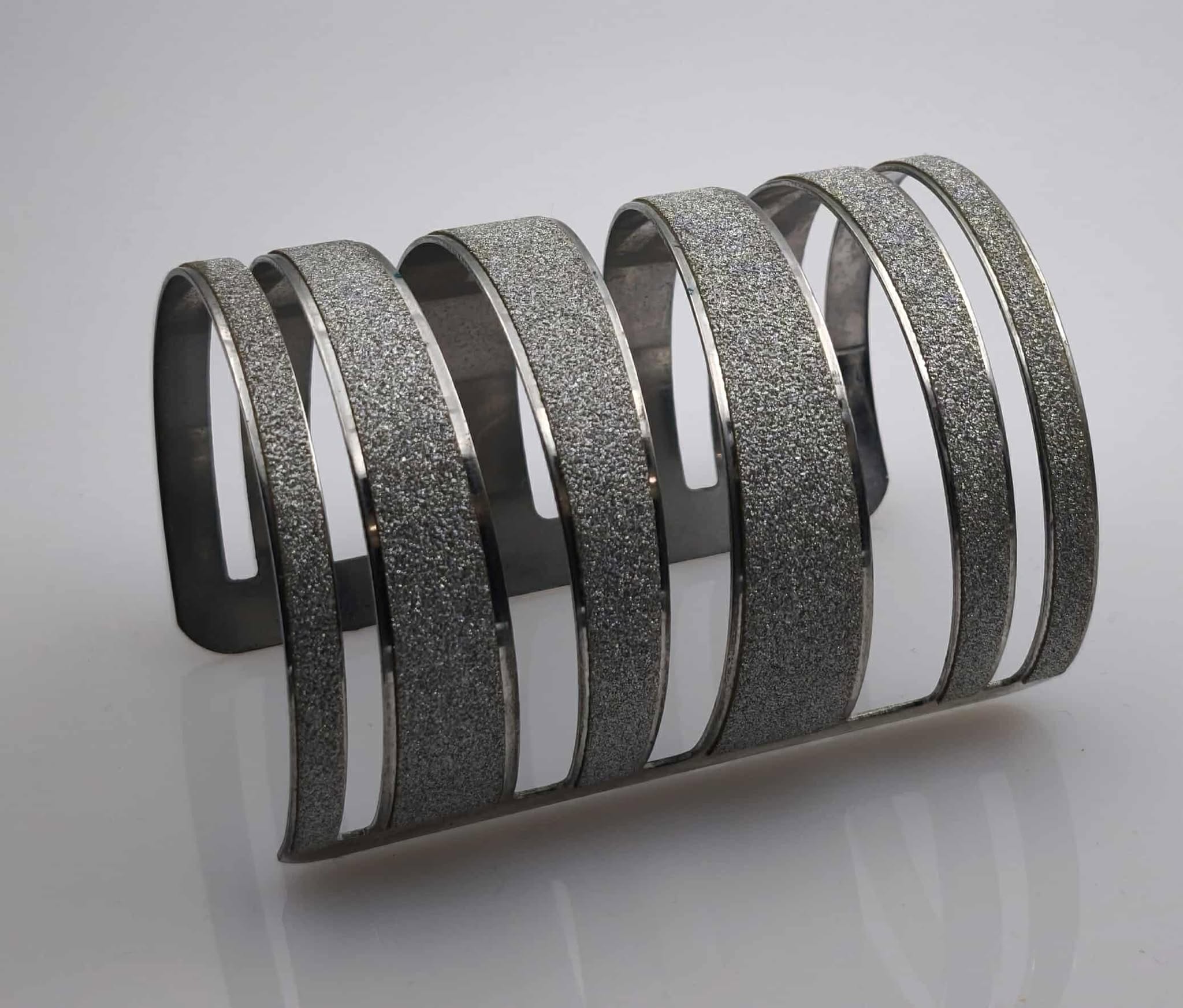 Les inconditionnelles de bijoux voyants trouveront amplement leur bonheur à travers l’exubérance de cette manchette argenté.