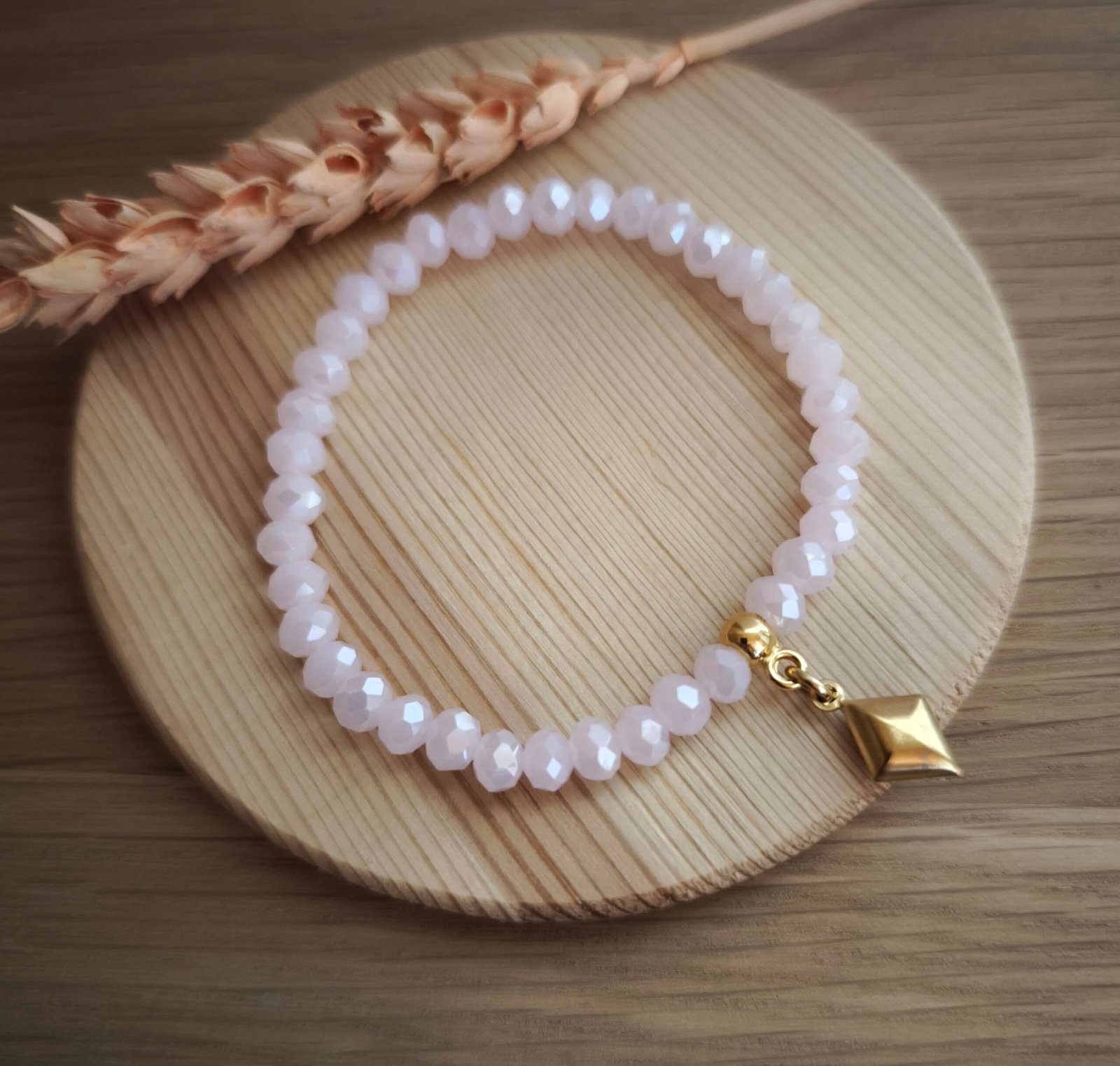 Chaque détail du bracelet est soigneusement choisi pour garantir une qualité optimale. Les perles de verre facettées ajoutent une touche scintillante et raffinée, tandis que la breloque en acier inoxydable doré est résistante à la corrosion, ce qui en fait une pièce durable et intemporelle. Ce mélange de matériaux de haute qualité crée un bijou qui résiste à l’usure quotidienne, tout en conservant son éclat et son charme pour les années à venir.