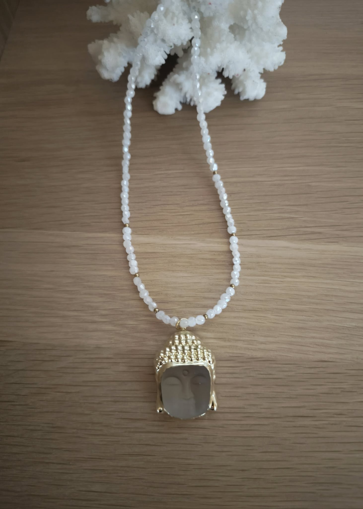 Apportez une touche d’élégance et de sérénité à votre style avec ce magnifique collier avec un Bouddha en cristal de roche. Ce bijou unique allie harmonieusement la beauté intrinsèque des matériaux naturels et l’éclat des perles de verre facettées. Conçu pour captiver les regards tout en évoquant un sentiment de paix intérieure, ce collier est l’accessoire parfait pour sublimer vos tenues, qu’elles soient décontractées ou raffinées.