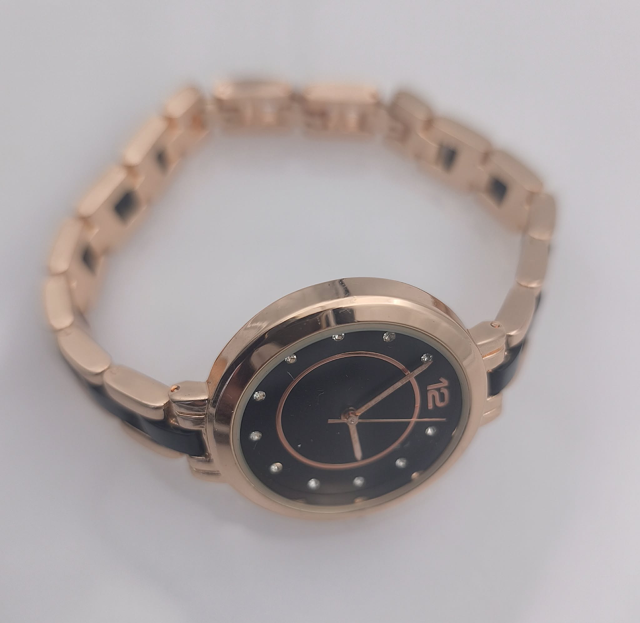 Adoptez cette montre Vintage de la marque LDADPR (42690) avec son bracelet en métal rose doré et noir. Fonctionne parfaitement.