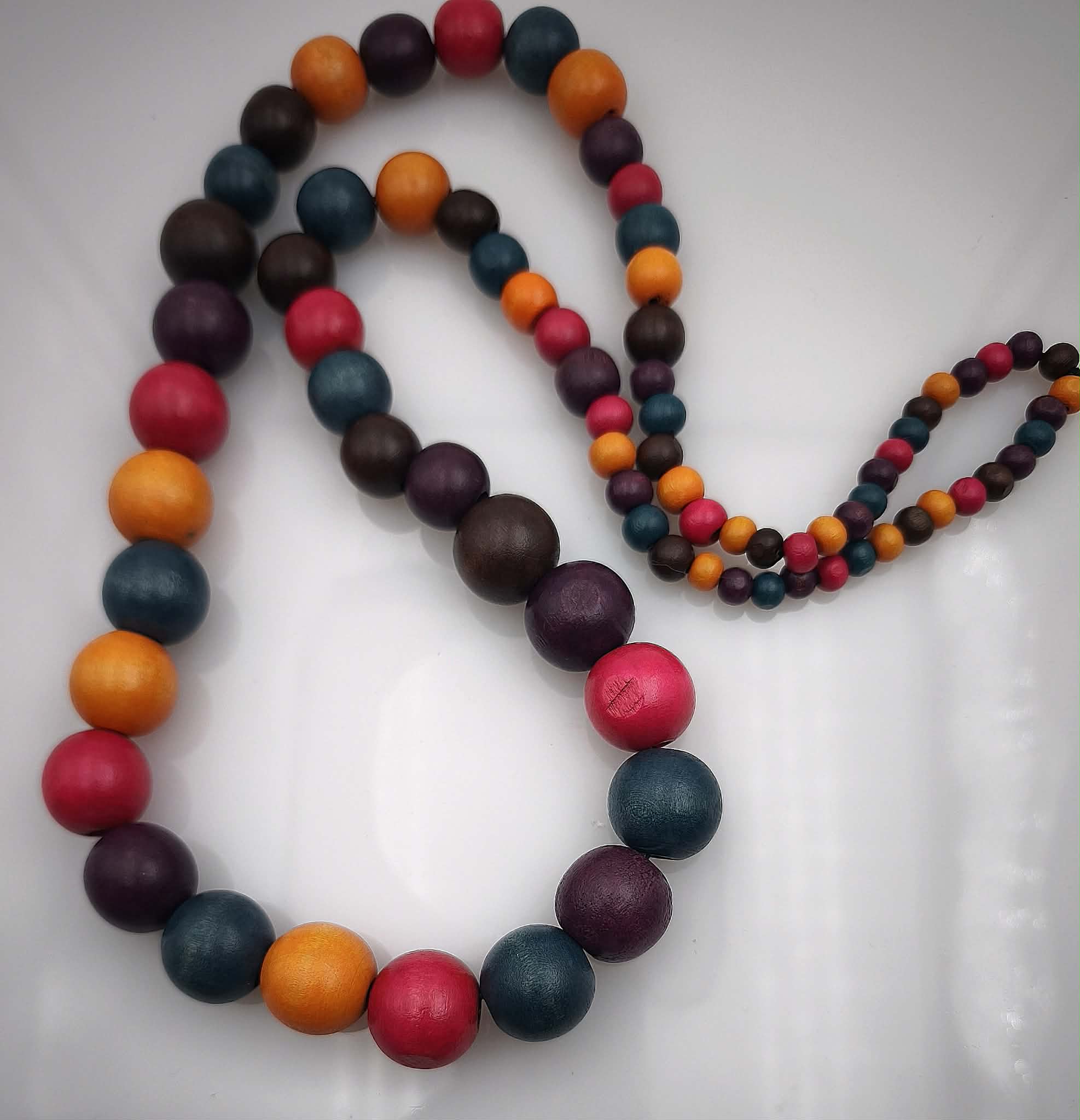 Sautoir coloré avec des perles en bois pour un effet bohème chic.